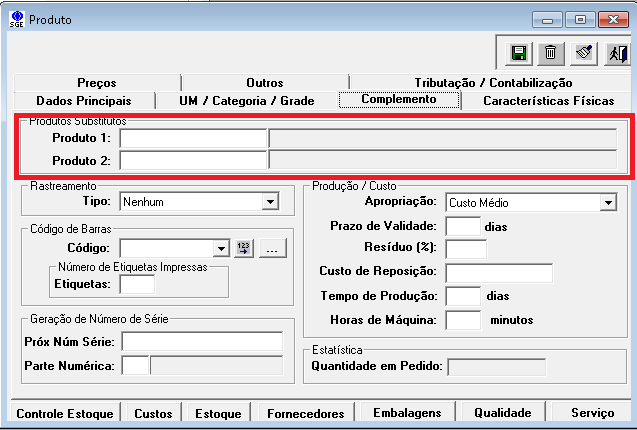 (*) No caso de itens produzidos onde foram utilizados insumos que não compõem o kit padrão do mesmo é necessário que no cadastro de produto o insumo padrão aponte para os possíveis substitutos usados.