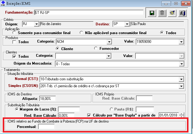 Caso existam exceções de ICMS cadastradas no Corporator onde exista o percentual de FCP é necessário fazer o ajuste no cadastro para informar tal situação.