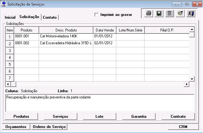 O sistema também permite ir da tela de Solicitação para de Relacionamento pelo botão “CRM” e da se Relacionamento para Solicitação pelo botão “Solicitação de Serviço”