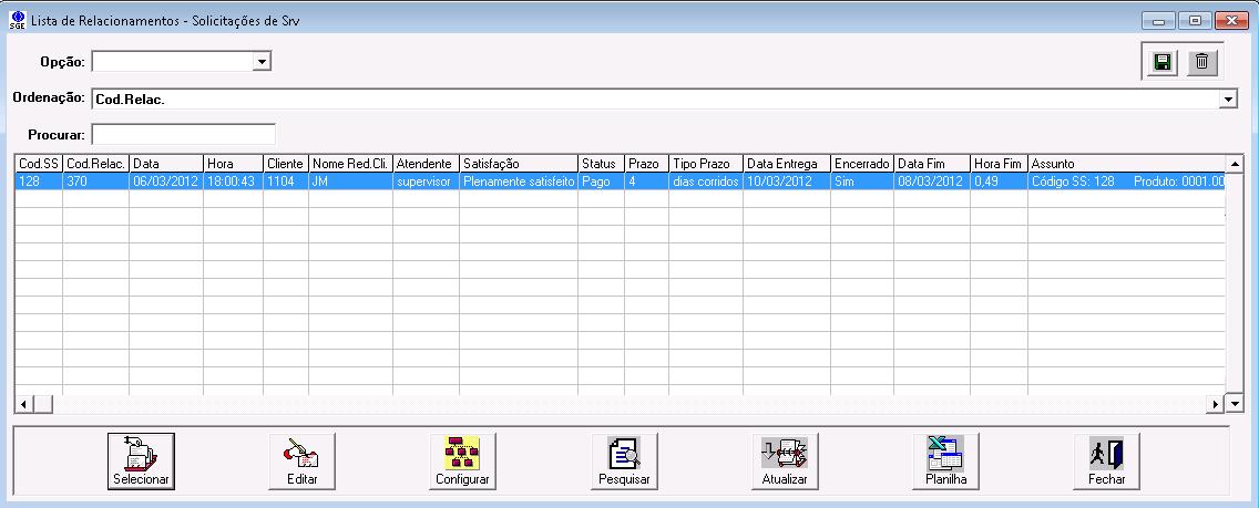 As informações contidas na solicitação e no CRM poderão ser visualizadas na consulta do módulo CRM menu “Consulta\Relacionamentos\Solicitações de Srv”