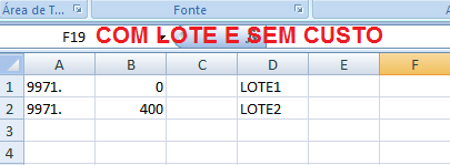 A planilha em excel deve ter as seguintes colunas: EAN ou Código do Produto/Quantidade/Custo/Lote/Filial OP, os dados devem ser colocados nessa ordem sem linhas em branco entre registros ou cabeçalho e a importação deve ser feita separadamente para cada almoxarifado