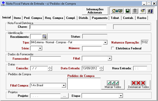 Menu: Movimentos\*Qualquer tela de cadastro de Nota Fiscal