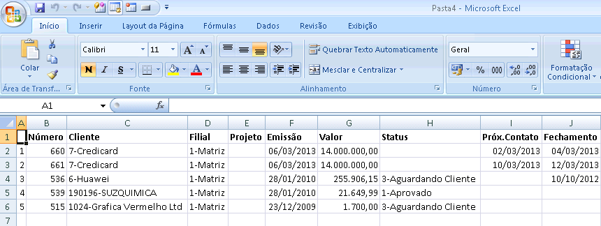 Escolhendo não Imprimir o Excel se abrirá com todos os dados contidos no grid