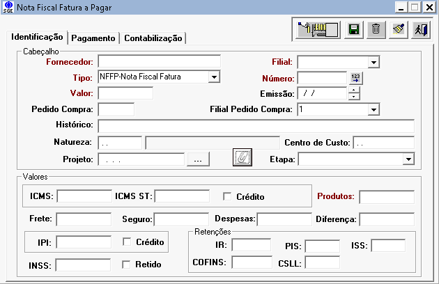 Ao clicar no botão com a figura do clip de papel uma nova tela se abrirá e nela a relação de documentos ligadas ao título a pagar poderá ser incluída ou consultada.