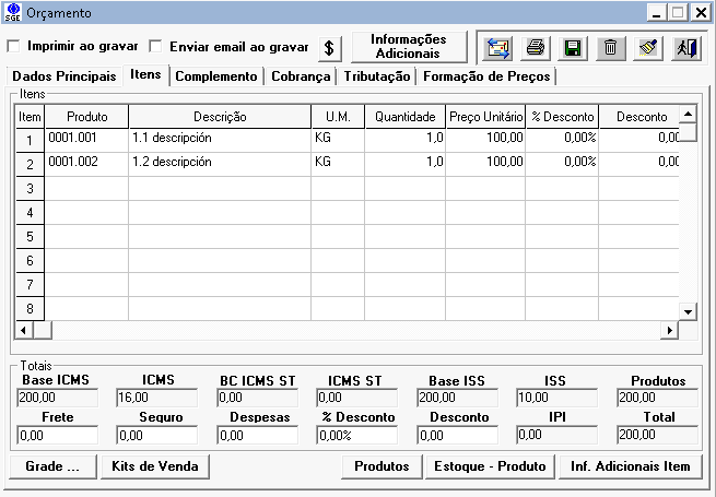 Ao clicar no botão com um $ o sistema abrirá uma nova tela onde uma tabela de preço poderá ser escolhida e os dados totalizados e item a item poderão ser comparados.