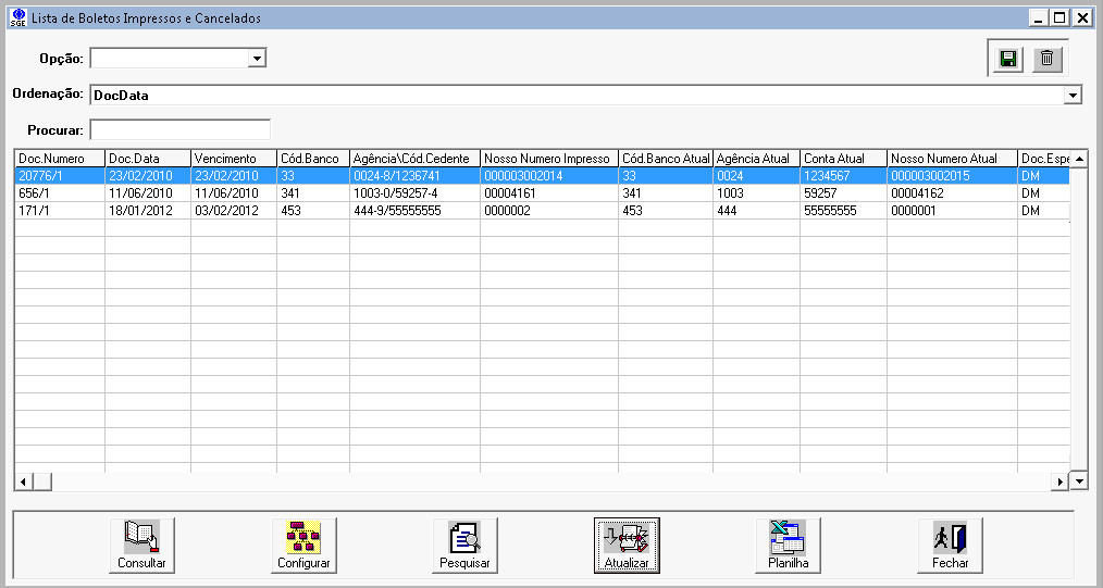 Módulo: "Contas a Receber" Menu: "Consultas\Titulos a Receber\Boletos Impressos e Cancelados"