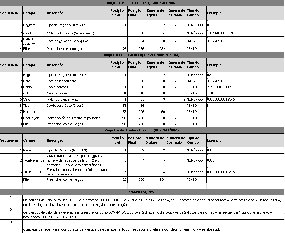 Layout do Arquivo