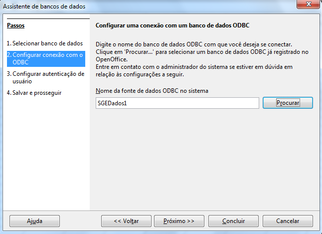 4- Clique no botão "Procurar" e selecione a fonte de dados "SGEDados1"*, em seguida clique no botão "Próximo"