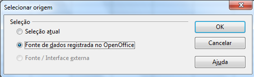 2- Selecione "Fonte de dados registrada no OpenOffice" e clique em ok