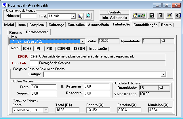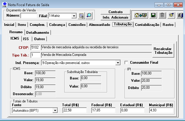 Os dados mais atualizados do IBPTax já se encontram em nossa base de dados fazendo com que o valor aproximado desses impostos sejam calculados de forma automática pelo sistema de acordo com o NCM do produto ou NBS do serviço para UF de sua empresa.