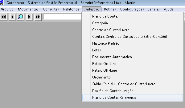 Para sua utilização é necessário indicar qual deles é o usado pela sua empresa e fazer a correlação entre as contas do plano de contas referencial e o seu plano de contas. Para isso vá em "Contabilidade: Cadastro\Plano de Contas Referencial"