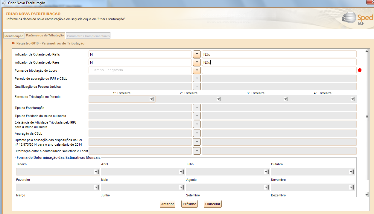Dentre as informações faltantes é necessário preencher para o Lucro Real, por exemplo: