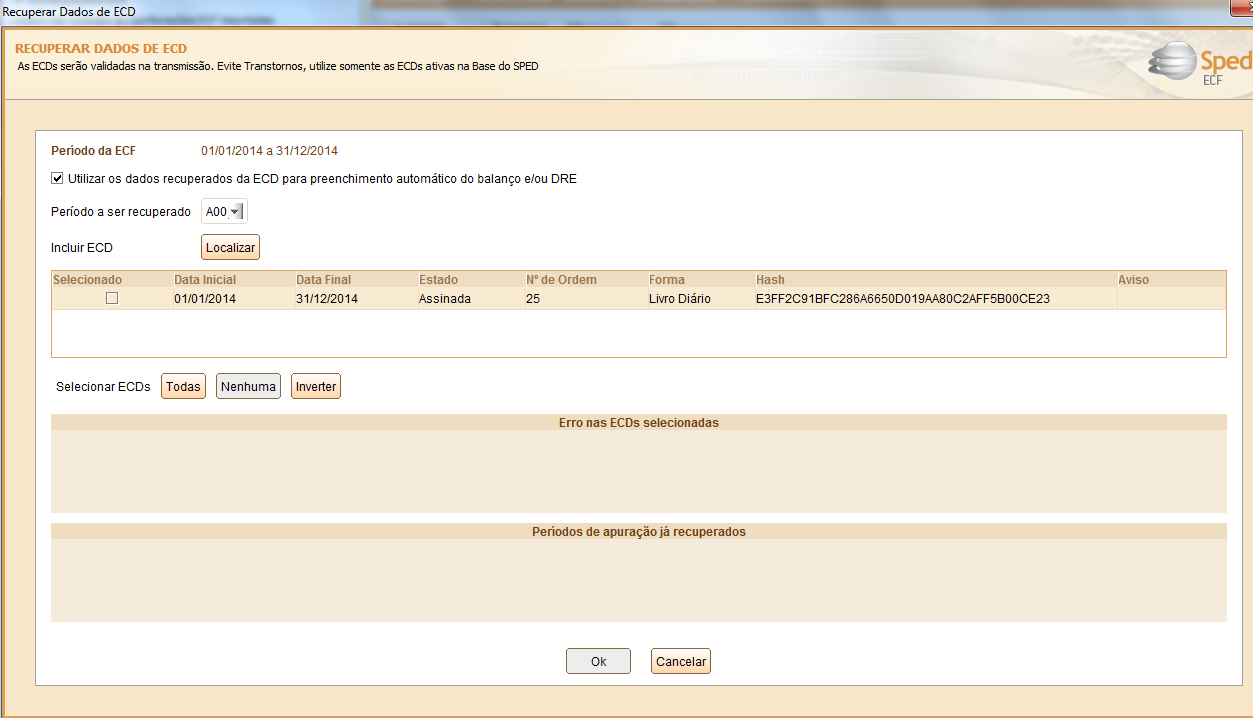 4 - Importe o ECD (SPED Contábil) do mesmo ano de referência enviado para receita