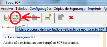 5.2 - No validador da ECF selecione a opção de importação da ECF (Arquivo\Importar ou o segundo botão do menu)