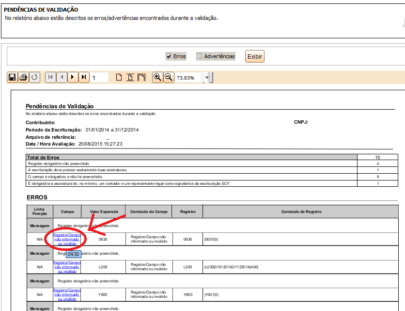 6.2 - Alguns erros ainda vão ocorrer devido a falta de informações, exiba-os em detalhe e clique neles pelo próprio validador para completar o preenchimento.