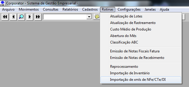 1- Vá em "Estoque: Rotinas\Importação de xmls de NFe/CTe/DI"
