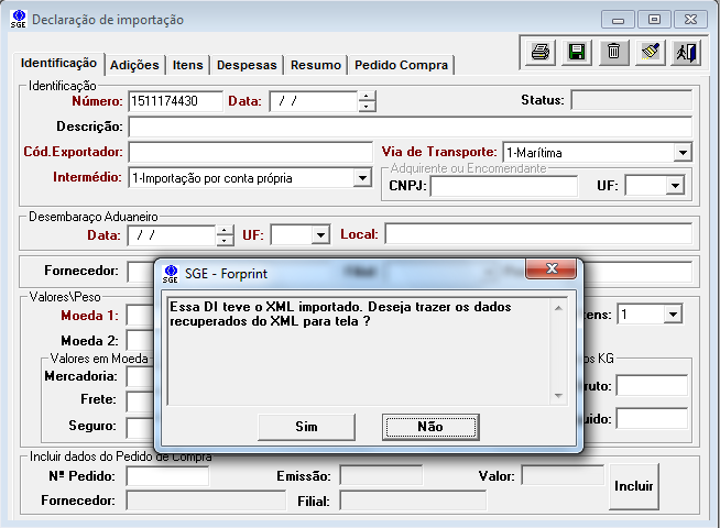 Importação do Xml da Declaração de Importação (DI)