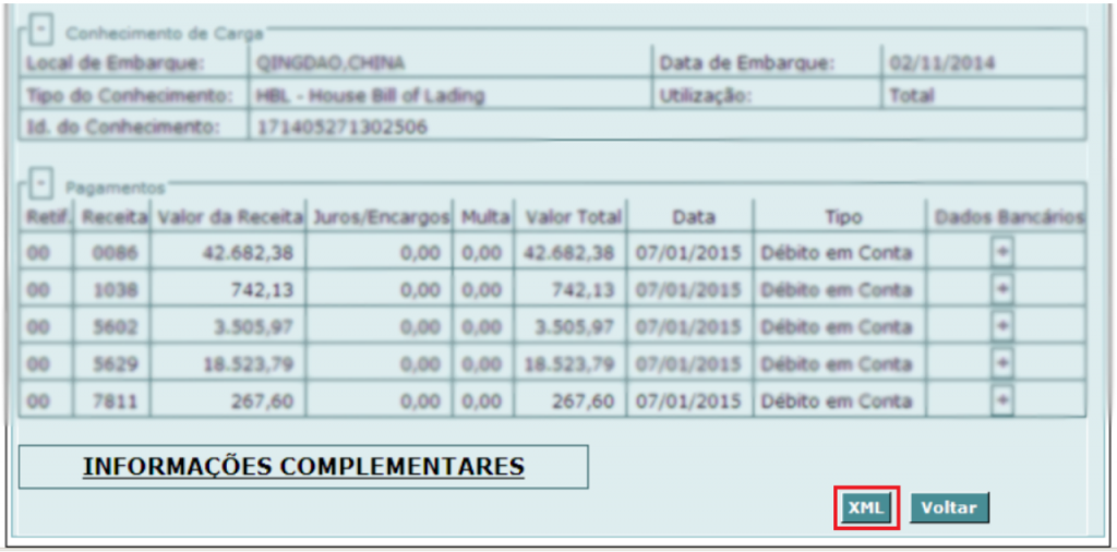 4- Utilize o botão "XML" ao final da consulta para gerar o arquivo no seu computador