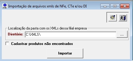 2- Indique o local onde se encontram os arquivos xmls e clique no botão "Importar"